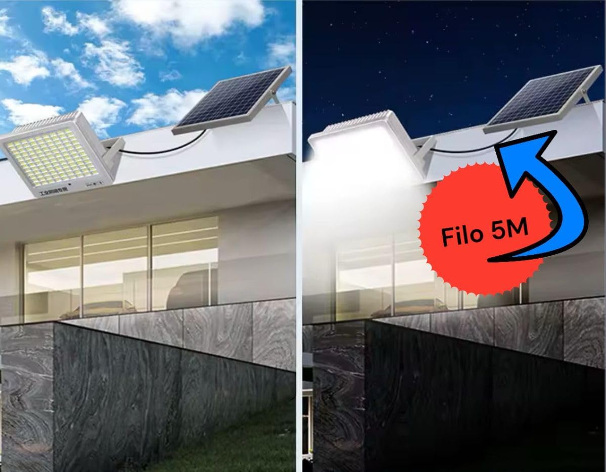 Faro Led 1000w Completo di Pannello Fotovoltaico 6500k,Impermabile IP66 con Sensore di Movimento,Crepuscolare,Telecomando, da Esterno