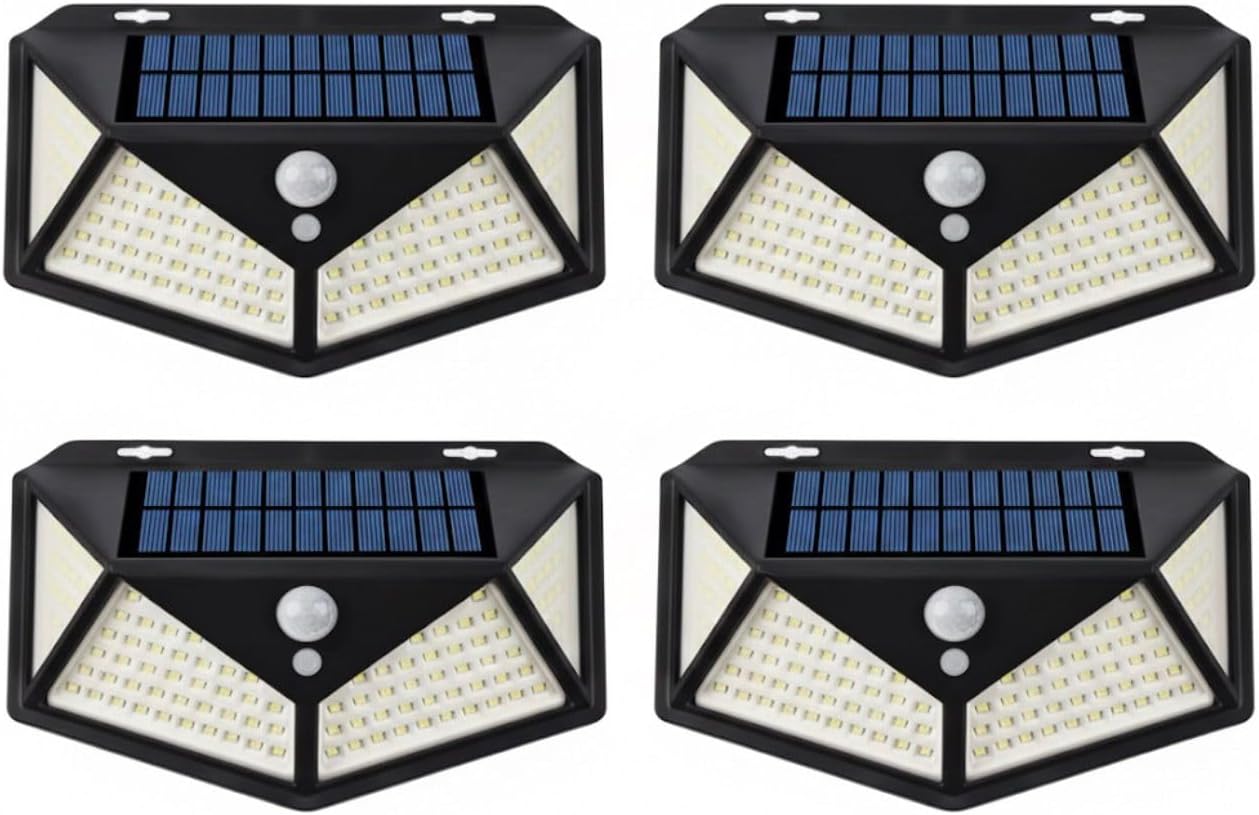 Generico 4x Faretto Faro solare 300 Led con sensore di movimento impermeabile da esterno 900LM IP65 Luce Bianca Fredda [Classe di efficienza energetica A]