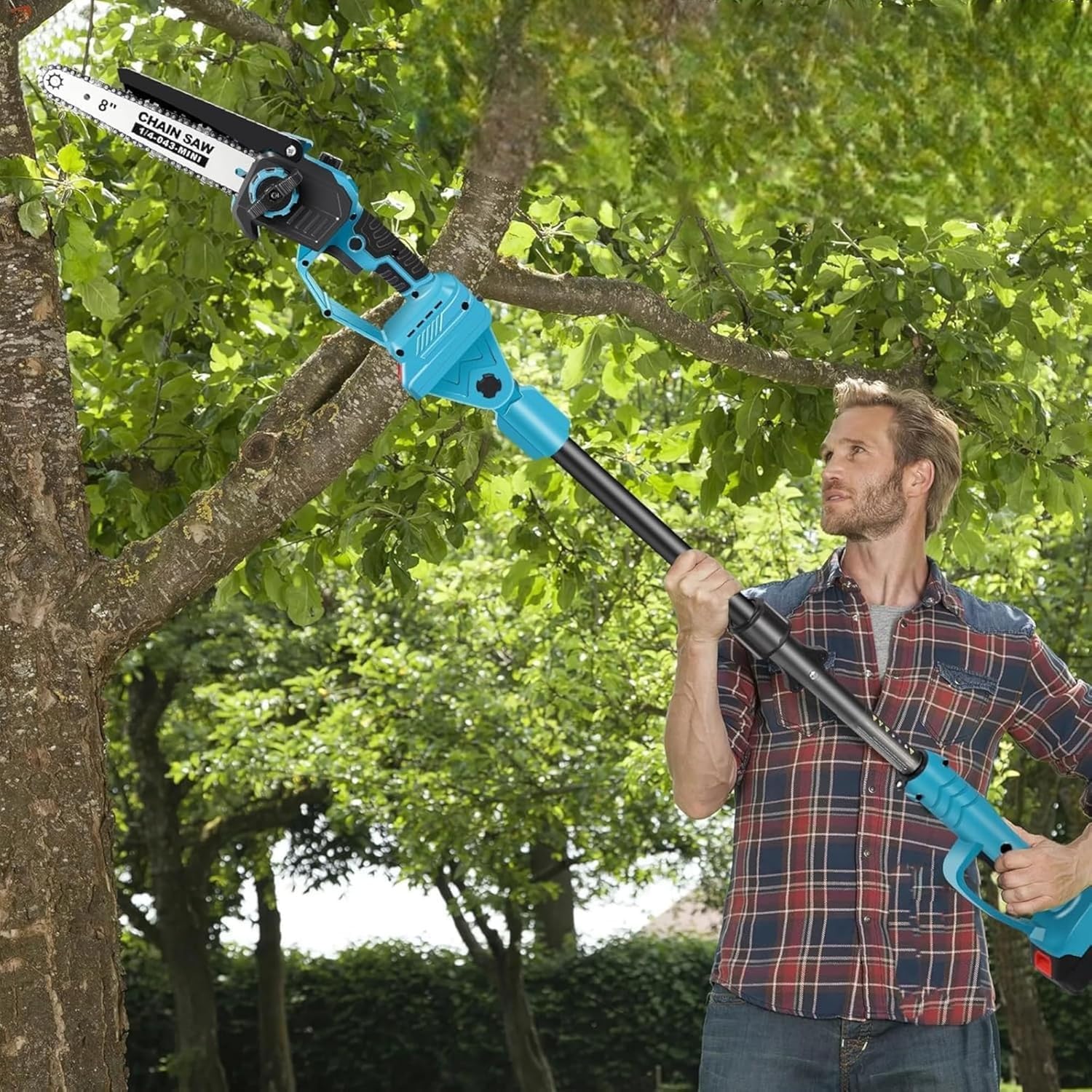 Kit Potatura, 4 in 1 Motosega 8" con Lubrificazione Olio + Cesoia Forbice Taglio 40mm + Lampada Led + Asta Telescopica con 2 Batterie da 88VF 8Ah per Potatura Alberi Piante Siepi DIY