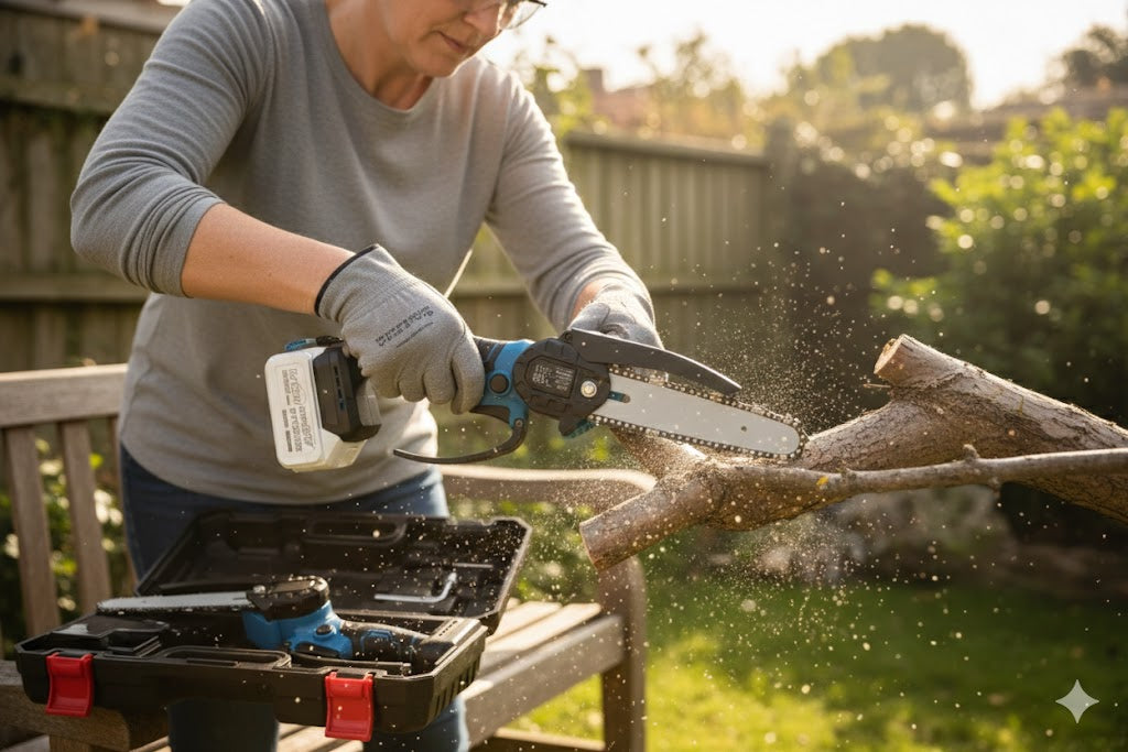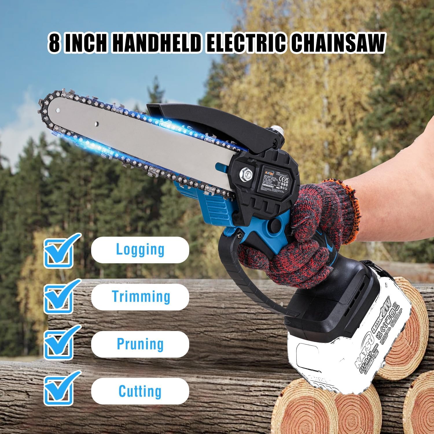- Potente: Questa mini motosega a batteria senza spazzole da 8 pollici offre una potenza di taglio di 6m/s, perfetta per la potatura e il giardinaggio.