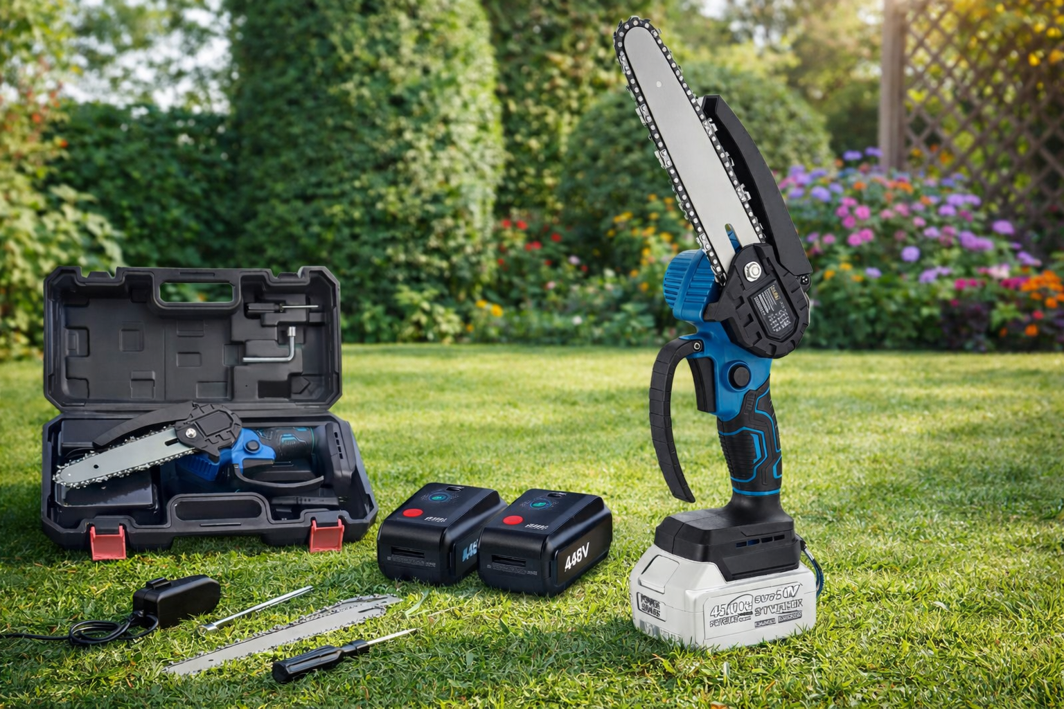 - Contenuto della confezione: Motosega 8" - 2xBatterie 48V - Alimentatore - Valigetta per il trasporto
